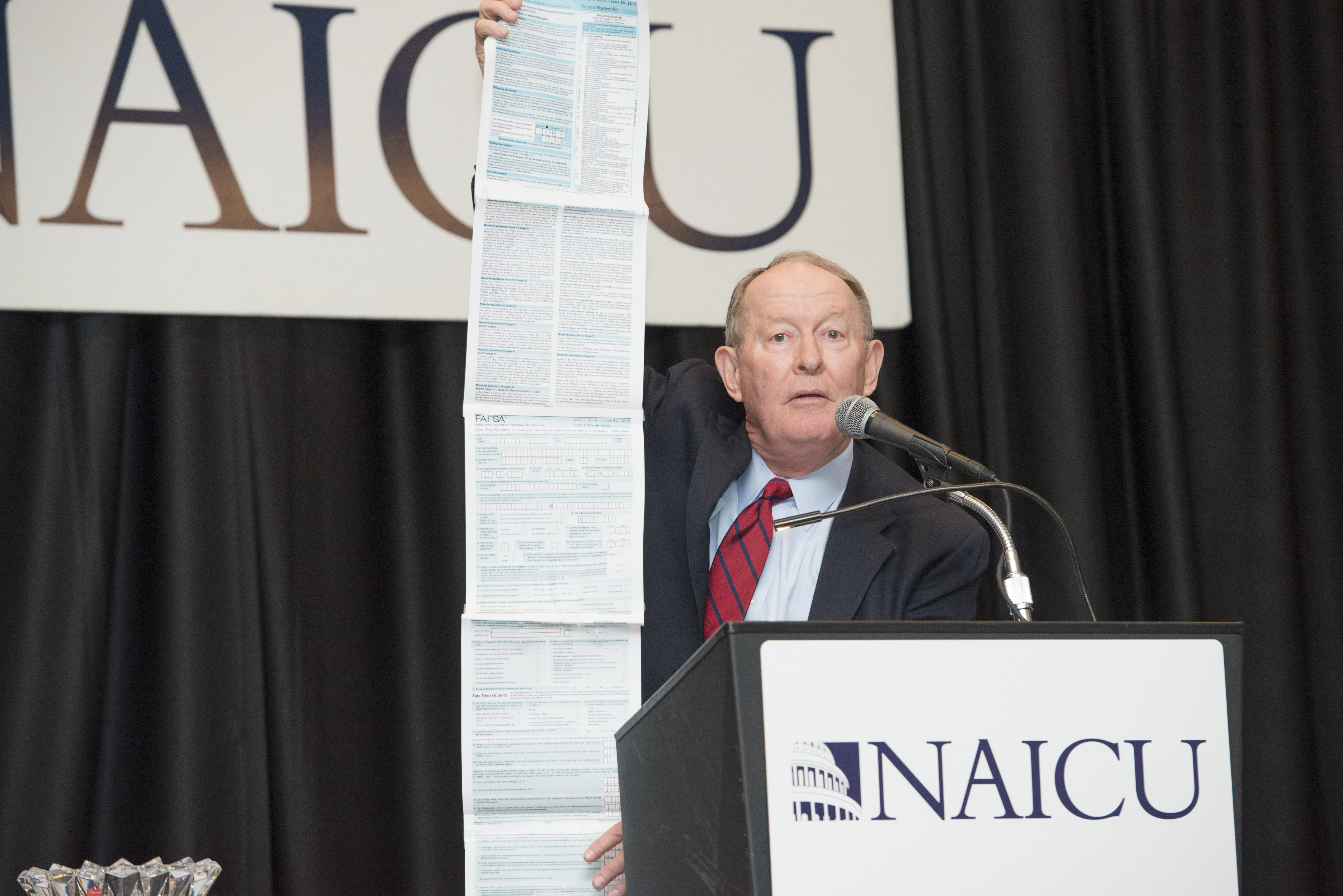 Sen. Alexander holds up 10 page application for simplified FAFSA, calls reform of higher regulations @ #naicu2014