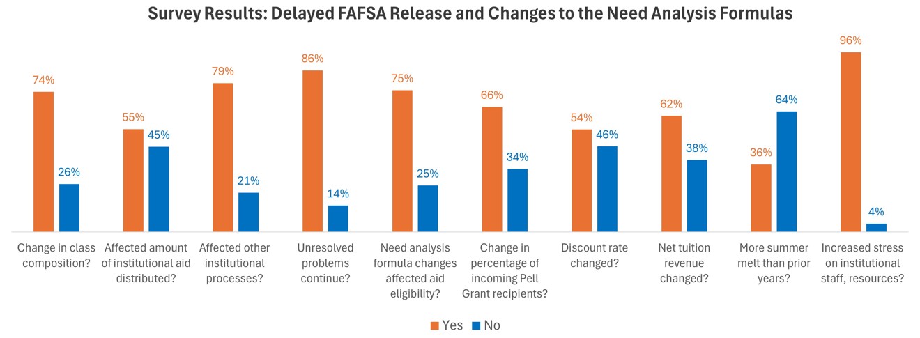 - Almost all institutions (5 in 6) continue to feel the impact of the FAFSA delay, citing persistent problems with corrections and newly seen problems that remain unresolved.