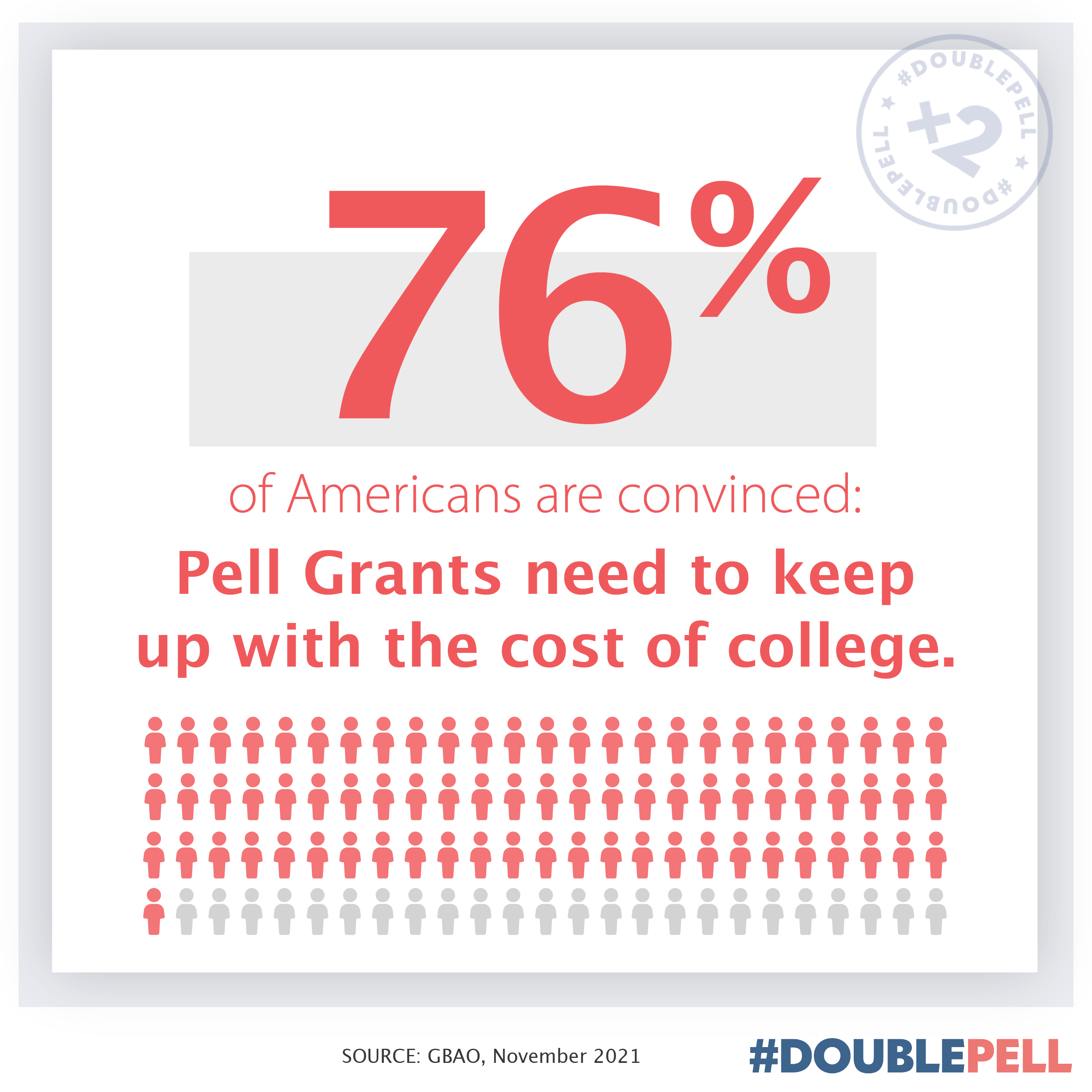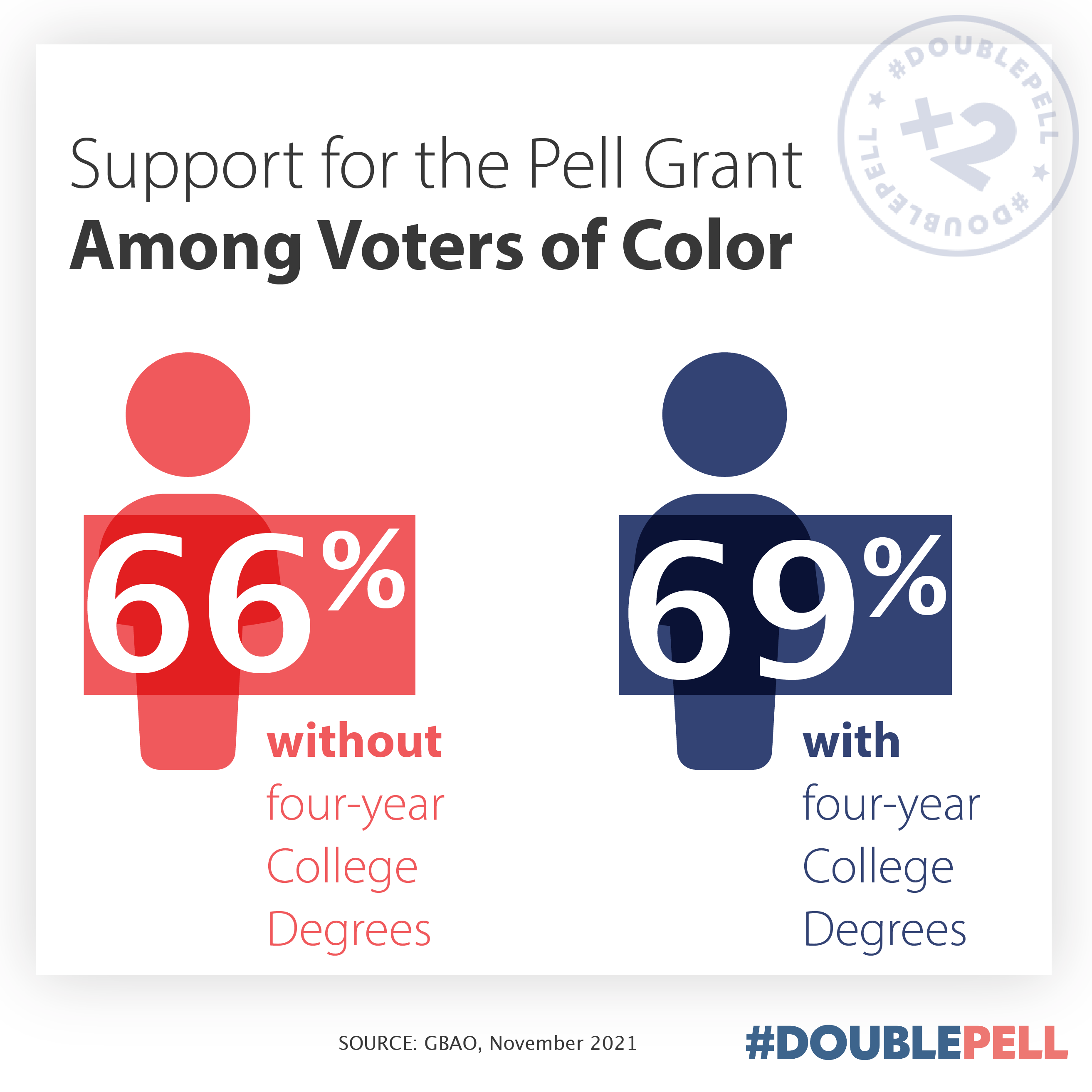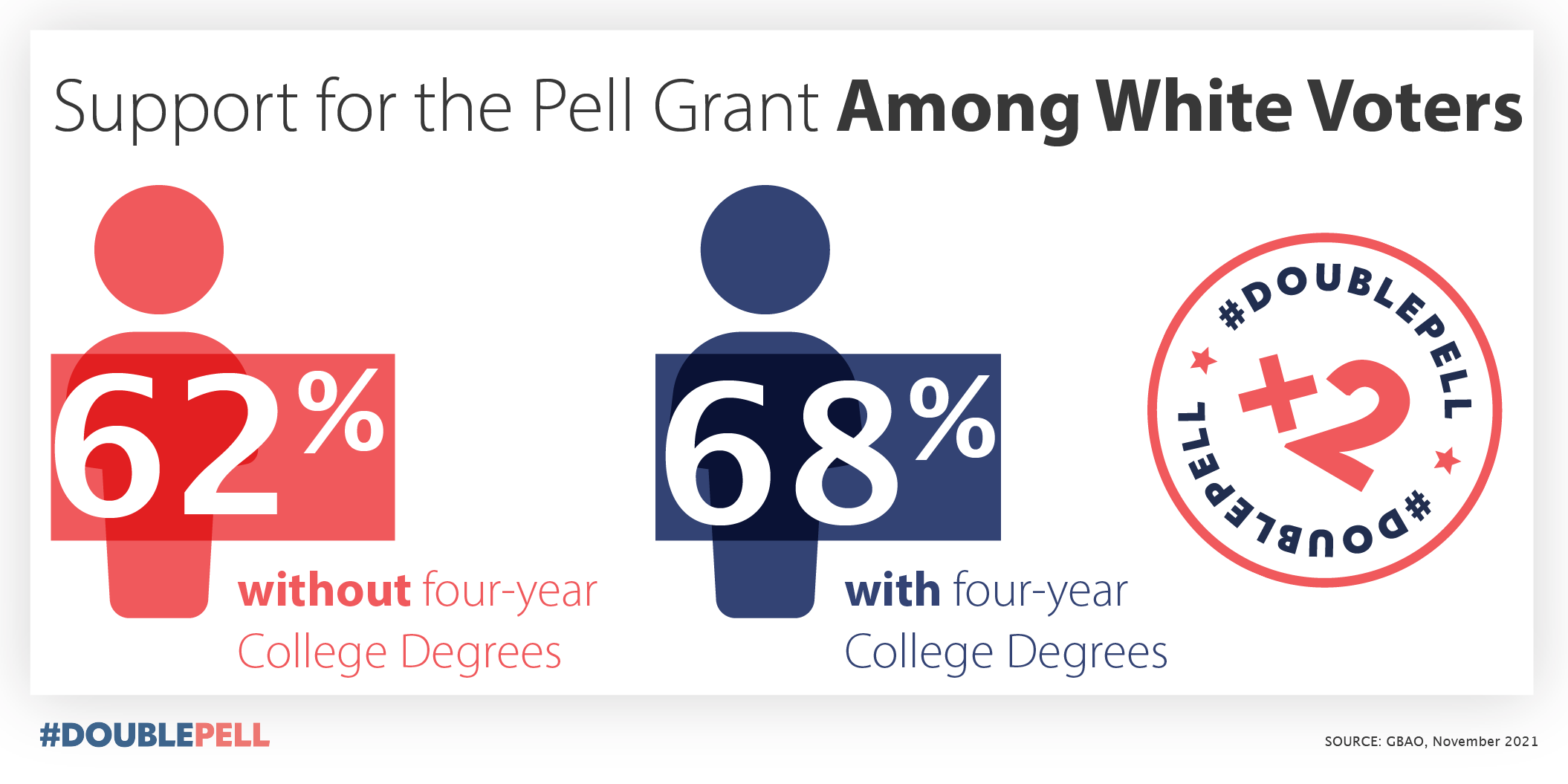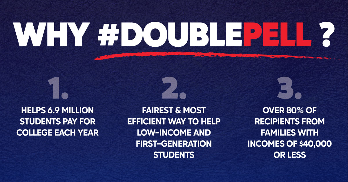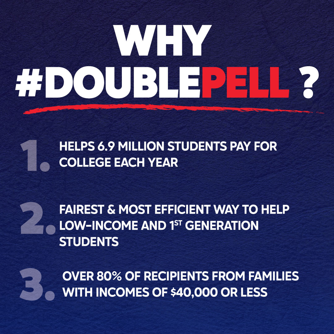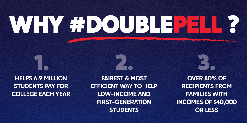 Pell Grants are a proven bipartisan program and the fairest and most efficient way to help low-income and first-generation students access and complete college. Additional grant aid helps keep low-income students in college and on track to graduation. #DoublePell