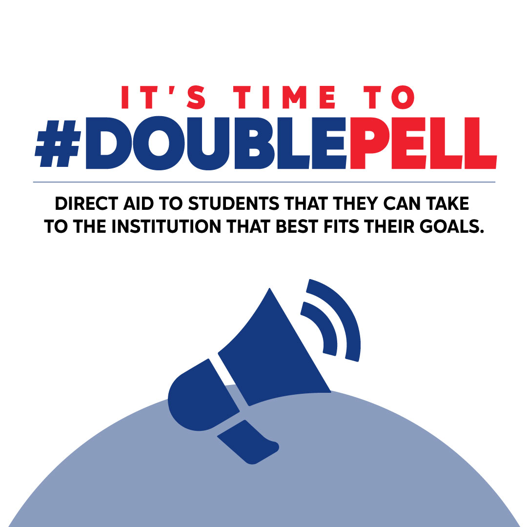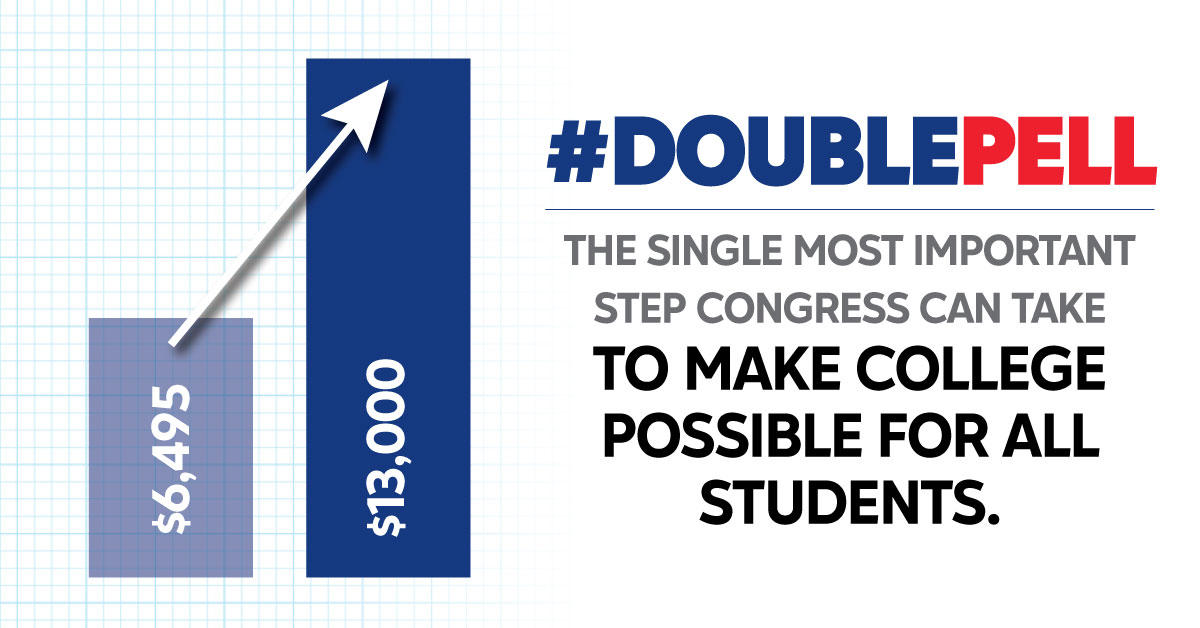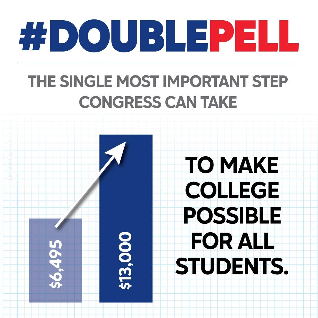 We are proud to join a national campaign to double the maximum Pell Grant to $13,000. [Name of institution] students & community, go to doublepell.org to write your member of Congress and engage on social media. #DoublePell