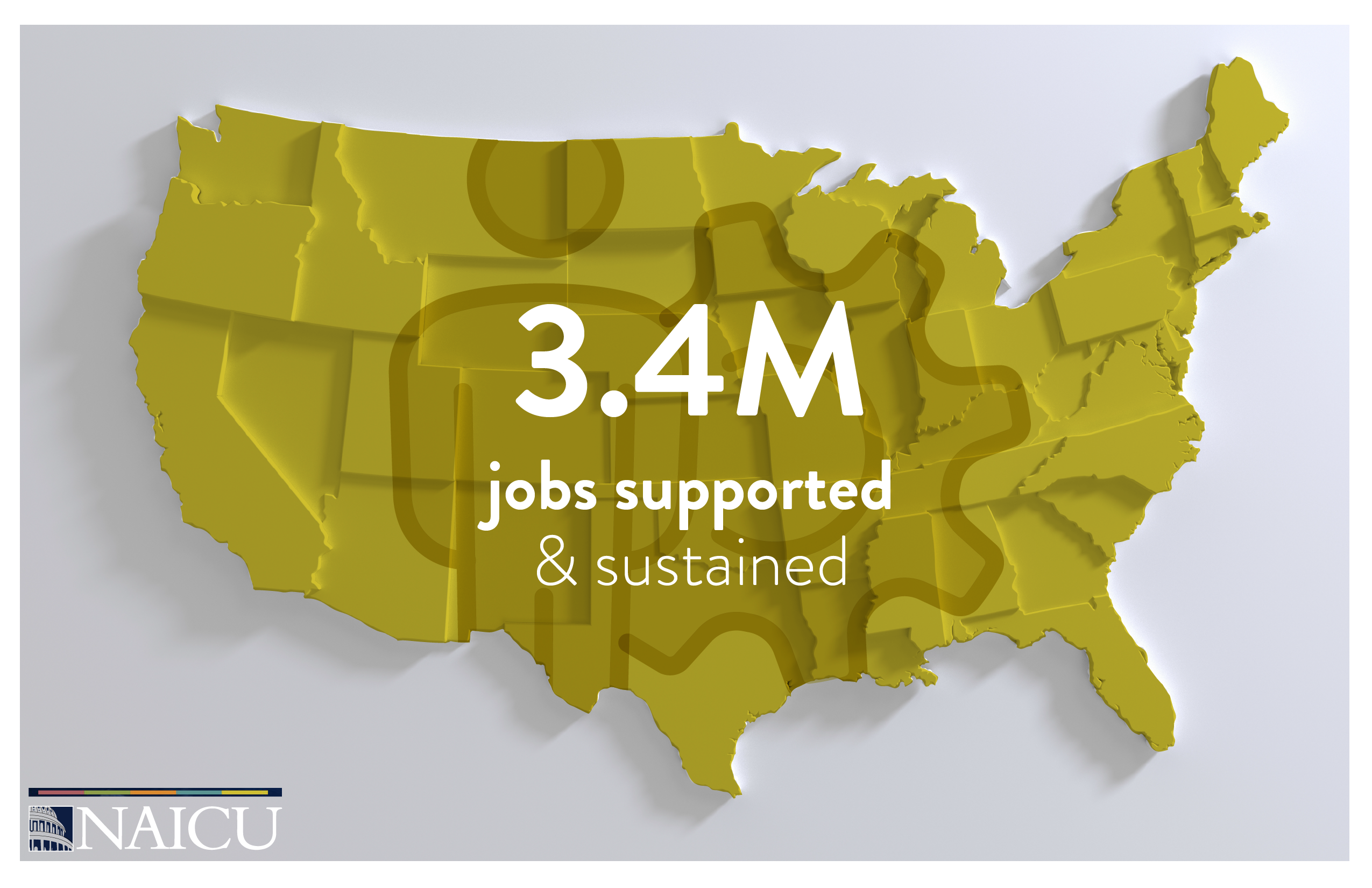 Private, nonprofit colleges and universities support and sustain a combined total of 3.4 million full-time and part-time jobs due to campus operations, student spending and visitor spending.